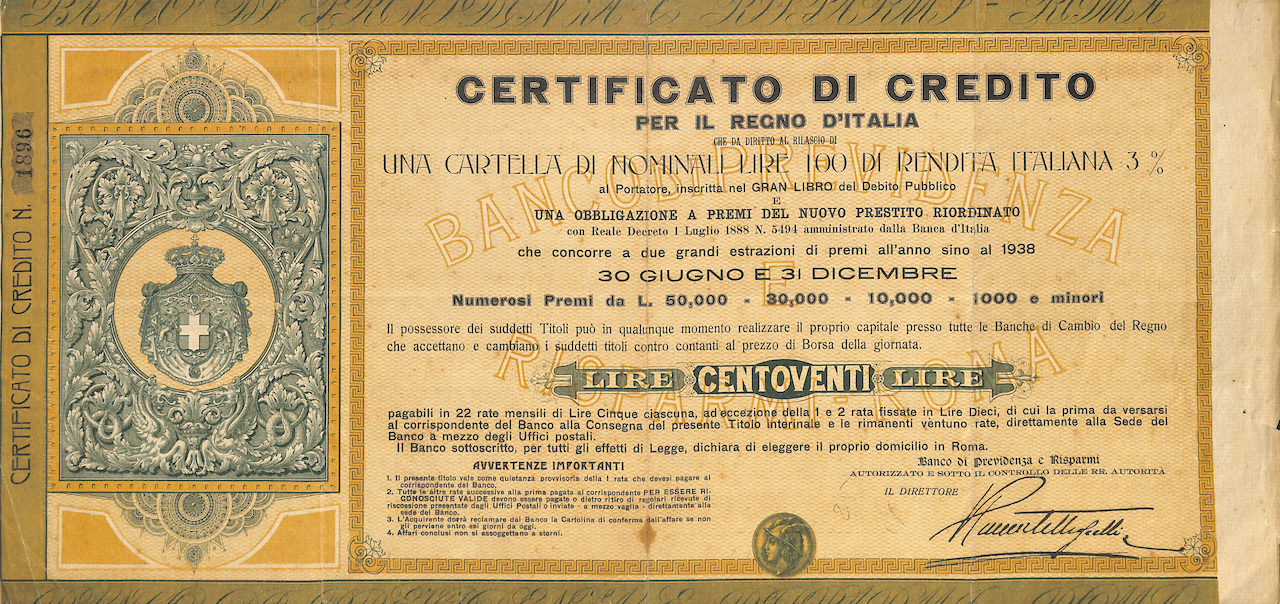 Certificato di Credito per il Regno d’Italia – Lire 120
