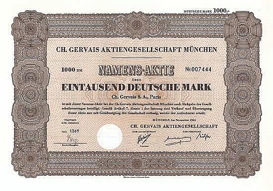 A-71441Ch. Gervais AG Munchen-1Monaco19651 azione da 1.000 Marchi--