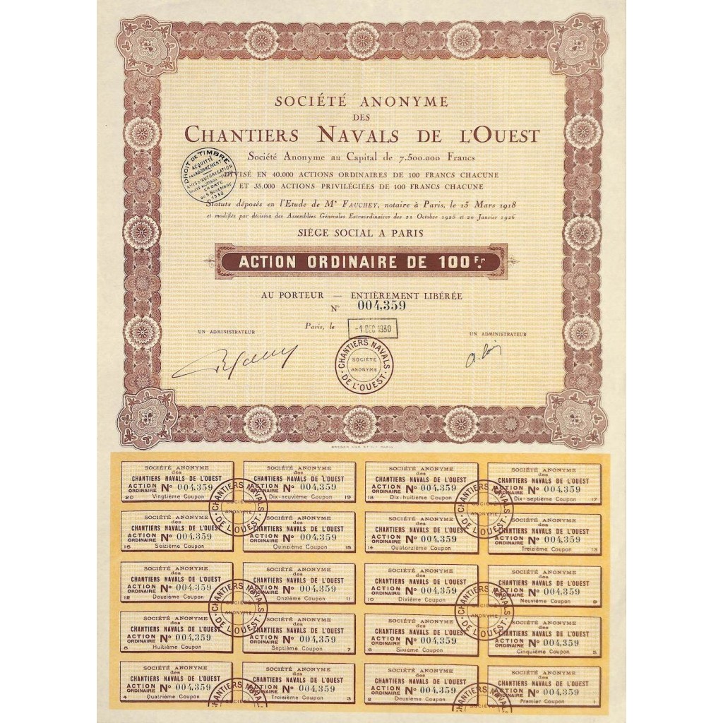 Una azione ordinaria al portatore del valore di 100 Franchi.