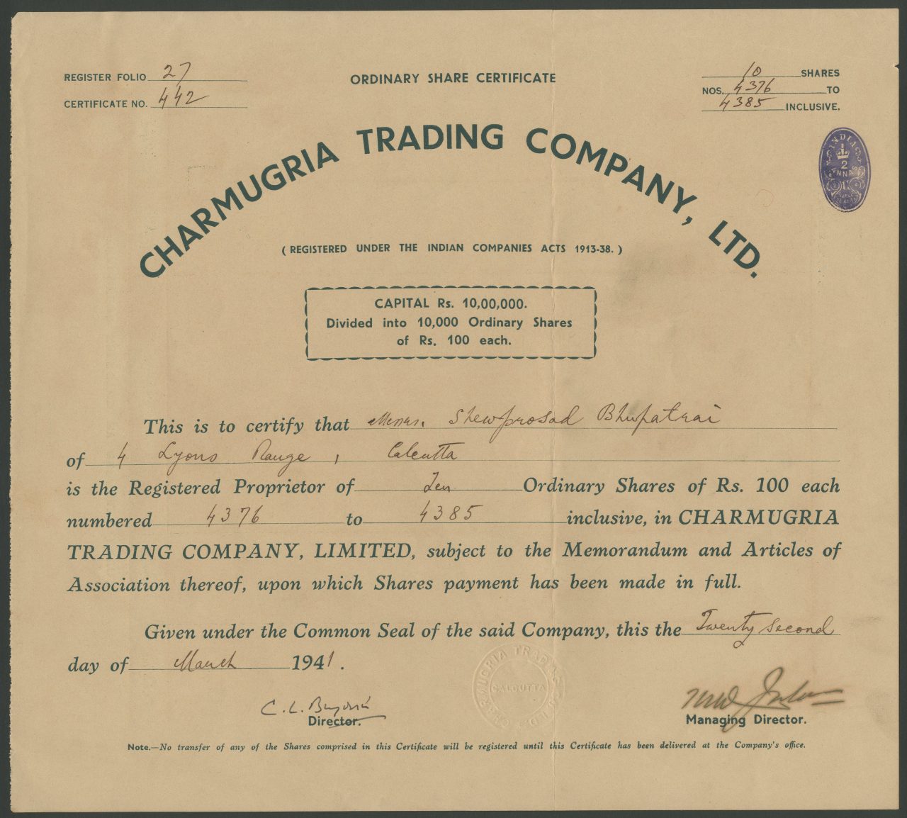 Incorporato il 27 gennaio 1941 ai sensi dell’Indian Companies Act 1913-1938.