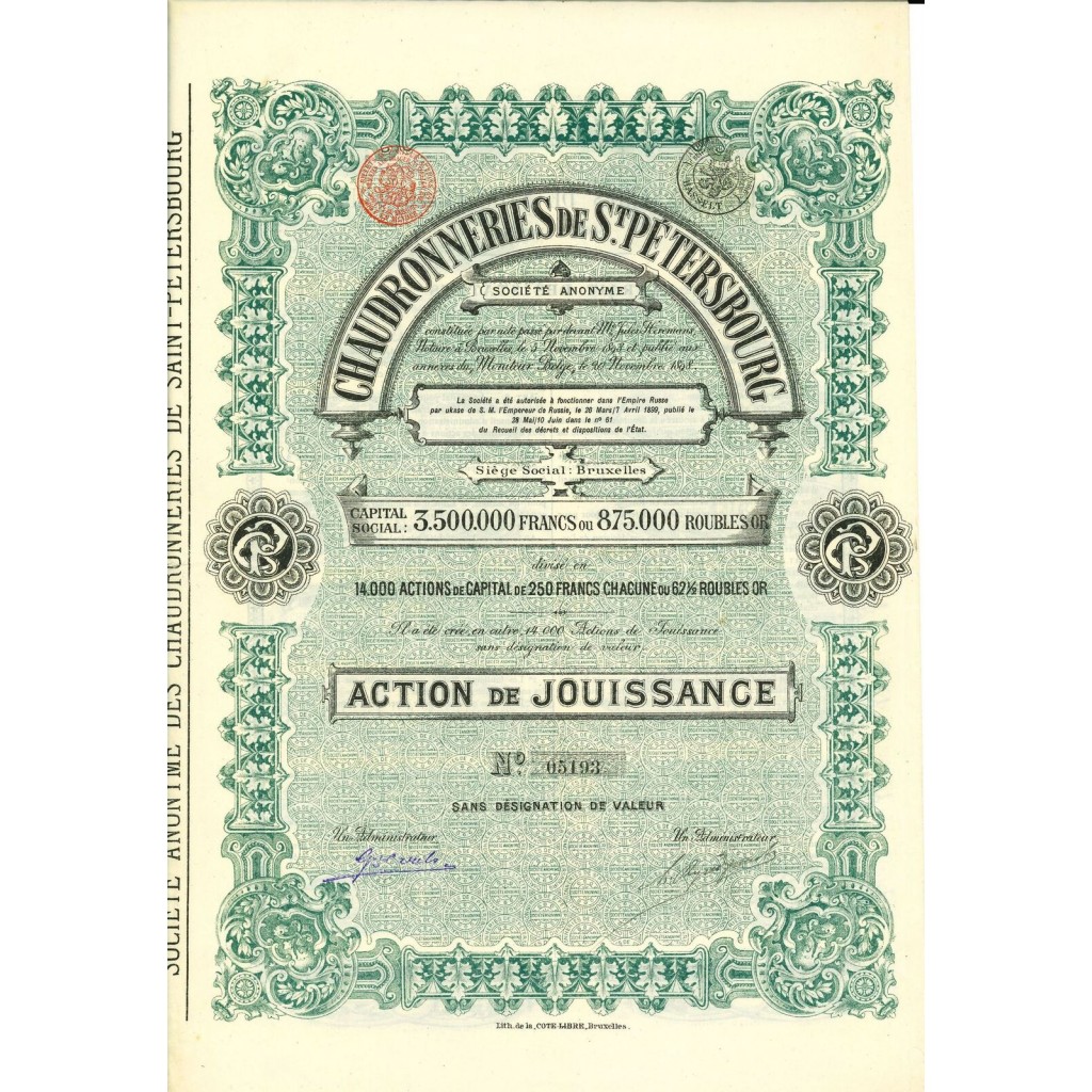 A-61004Chaudronneries de s. Petersbourg-1 San Pietroburgo1898Action de Juissance R1 (Più di 5000 pezzi)S1 (da 0 a 25 €)