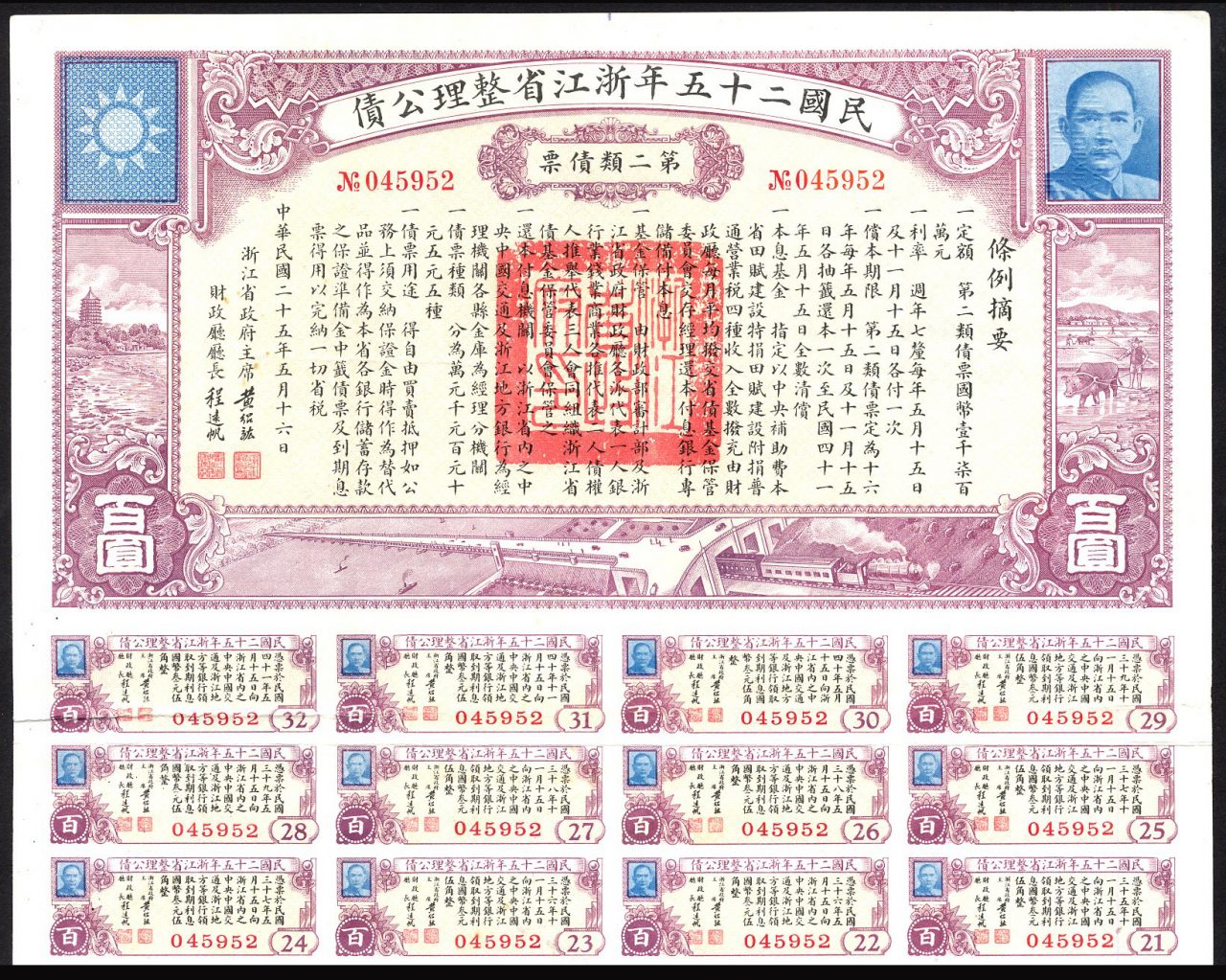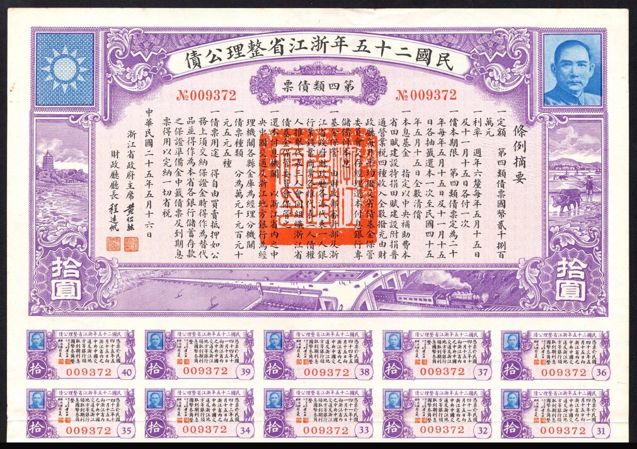 Chekiang Province 1936 6% Reconstruction Loan