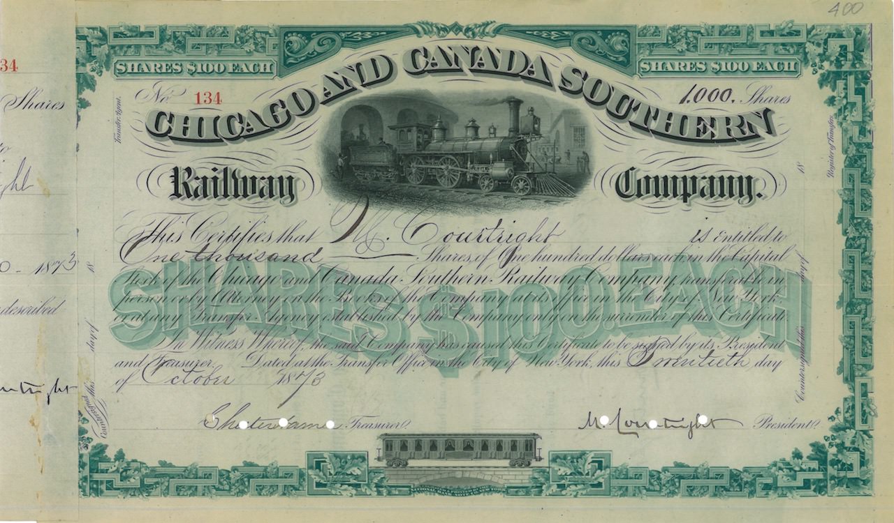 A-26857Chicago and Canada Southern Railway Company-1New York1873VariabileR5 (101-250 pezzi)S4 (da 101 a 250 €)