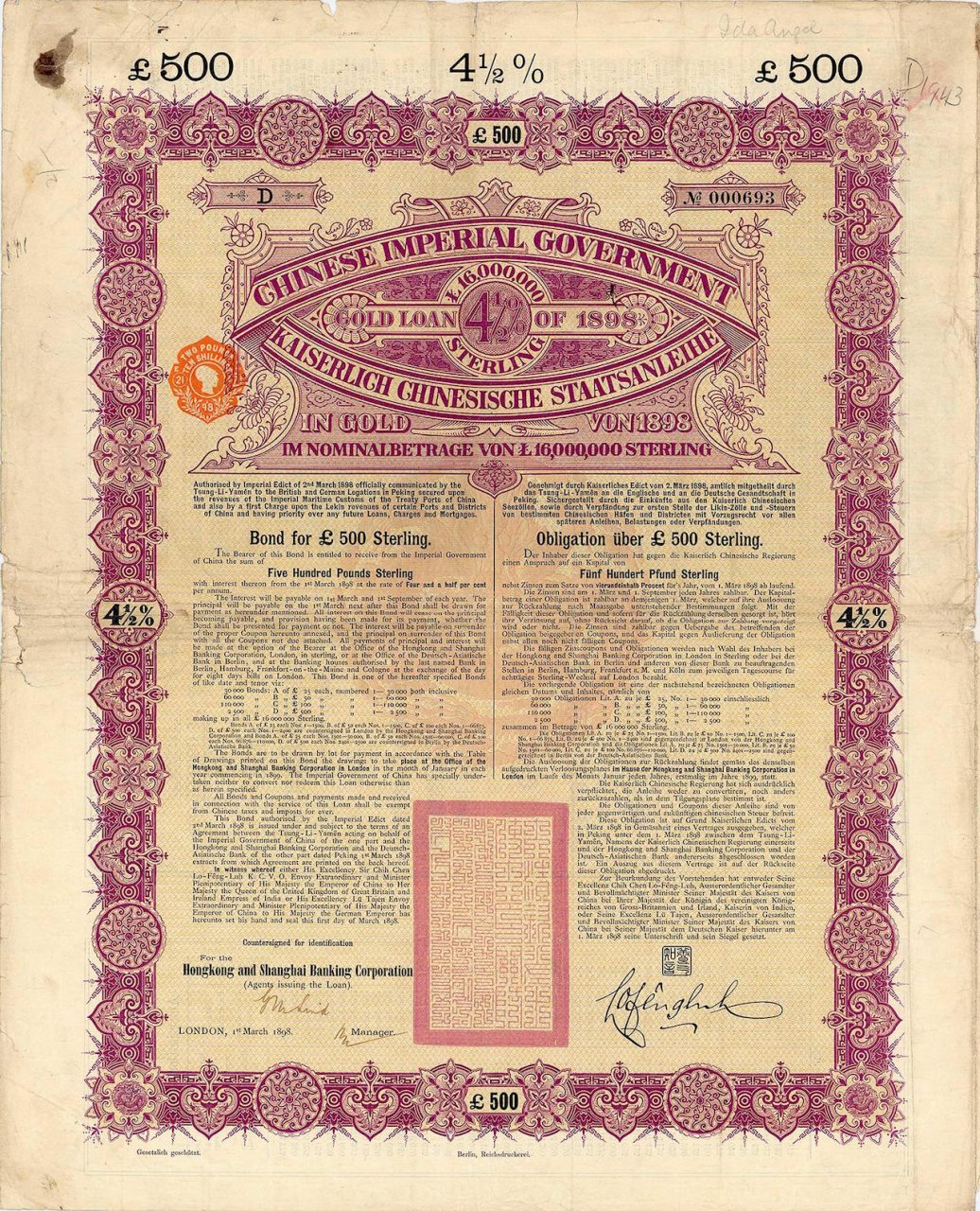 Chinese Imperial Government Gold Loan of 1898