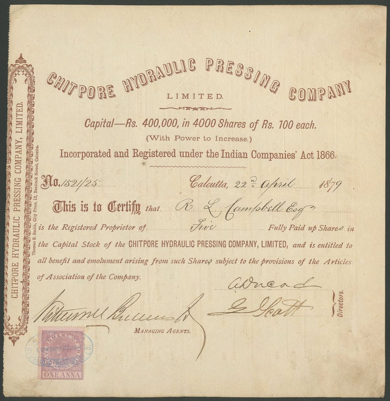 Incorporato sotto l’Indian Companies Act 1866. Gestiva una fabbrica di iuta a Chitpore.