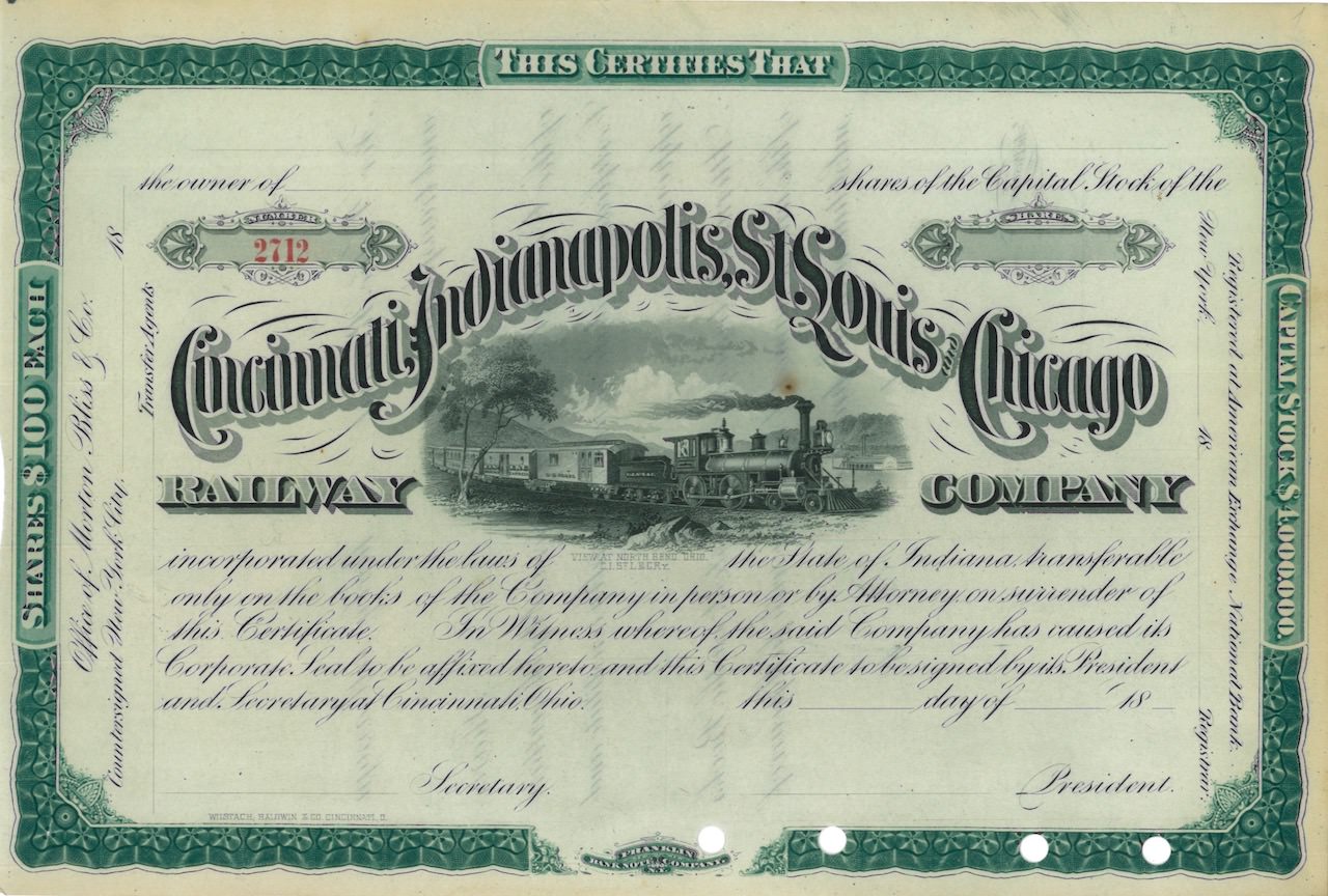 A-26765Cincinnati, Indianapolis, St. Louis and Chicago Railway C.-1Cincinnati (Ohio)-VariabileR3 (501-1000 pezzi)S3 (da 51 a 100 €)