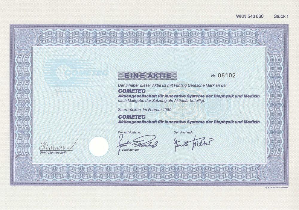 Fondata nel 1989, nel 1990 cambiò la ragione sociale in COMETEC Vermögensverwaltung AG e fece trasferimento da Saarbrücken a Essen. Principale azionista: AG per l’industria chimica, Saarlouis (oltre il 50%).