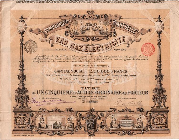 Splendida e ricca veste grafica con vignette ispirate agli obiettivi sociali, stemma del Regno del Belgio, lampioni ai lati da cui irradiano fasci di luce.