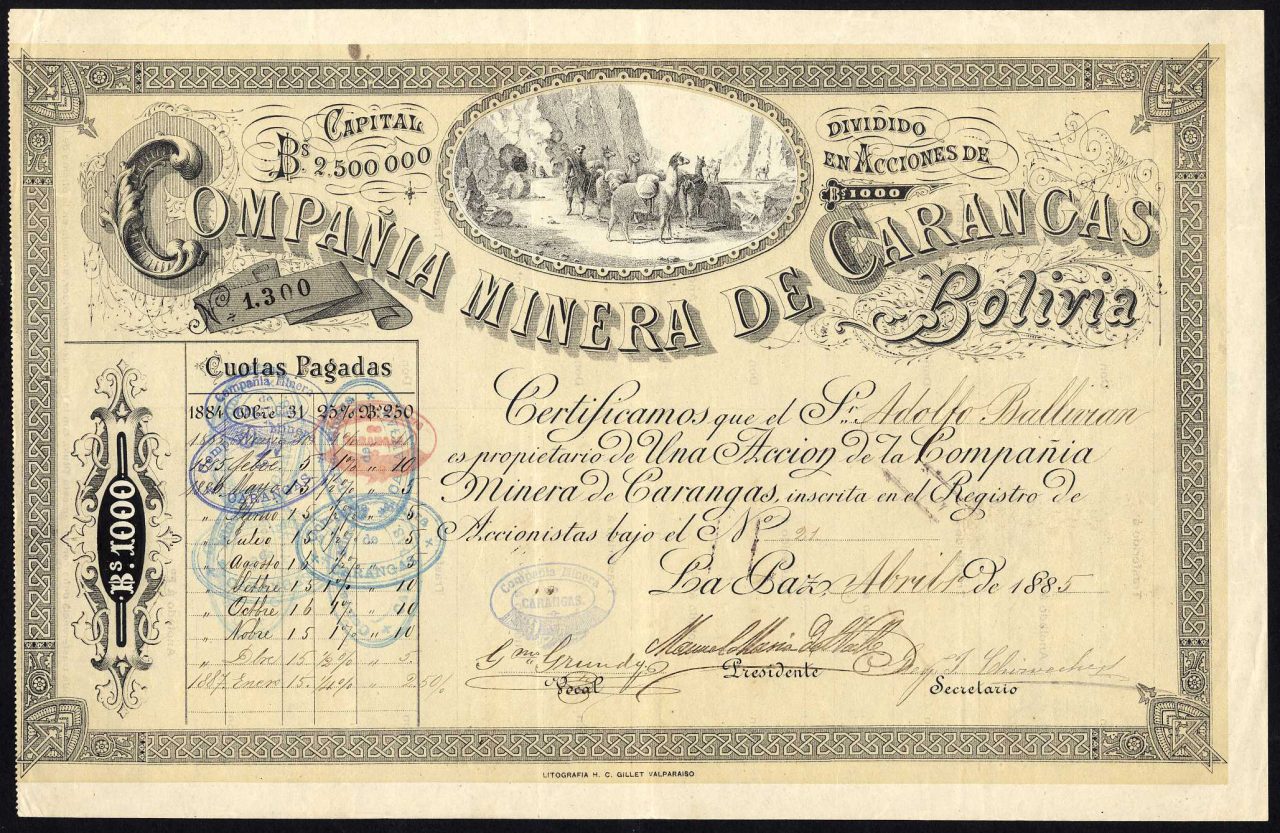 Capitale 2.500.000 boliviani in azioni di 1000 boliviani.