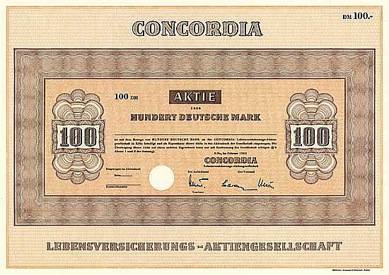 Nasce dalla Concordia Cölnische Lebens-Versicherungs-Gesellschaft, fondata nel 1853, che nel 1922 fondò la controllata Neue Concordia Lebens-Versicherungs-AG, che rilevò il portafoglio assicurativo e il capitale di copertura della capogruppo, liquidata nel 1930. Dal 1926 opera come Concordia Lebens-Versicherungs-Bank AG, dal 1937 Concordia Lebens-Versicherungs-AG. Nel 1955 fusione con Rothenburger Lebensversicherungs AG, fondata a Rothenburg nel 1856 (1923 Görlitz, 1946 Colonia), nel 1970 fusione con National Lebensversicherungs-AG, fondata nel 1924 a Stettino (1946 Lübeck) e con Gladbacher Lebensversicherungs AG, fondata nel 1858 a Haynau ( 1925 Berlino, 1931 Mönchengladbach). Nel 1971 ridenominazione in Colonia Lebensversicherung AG, Colonia, dal 1997 AXA ... Altro