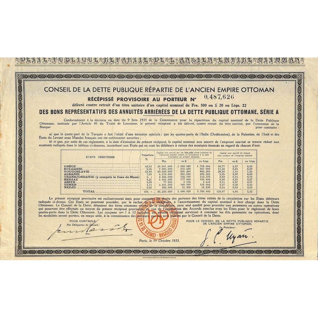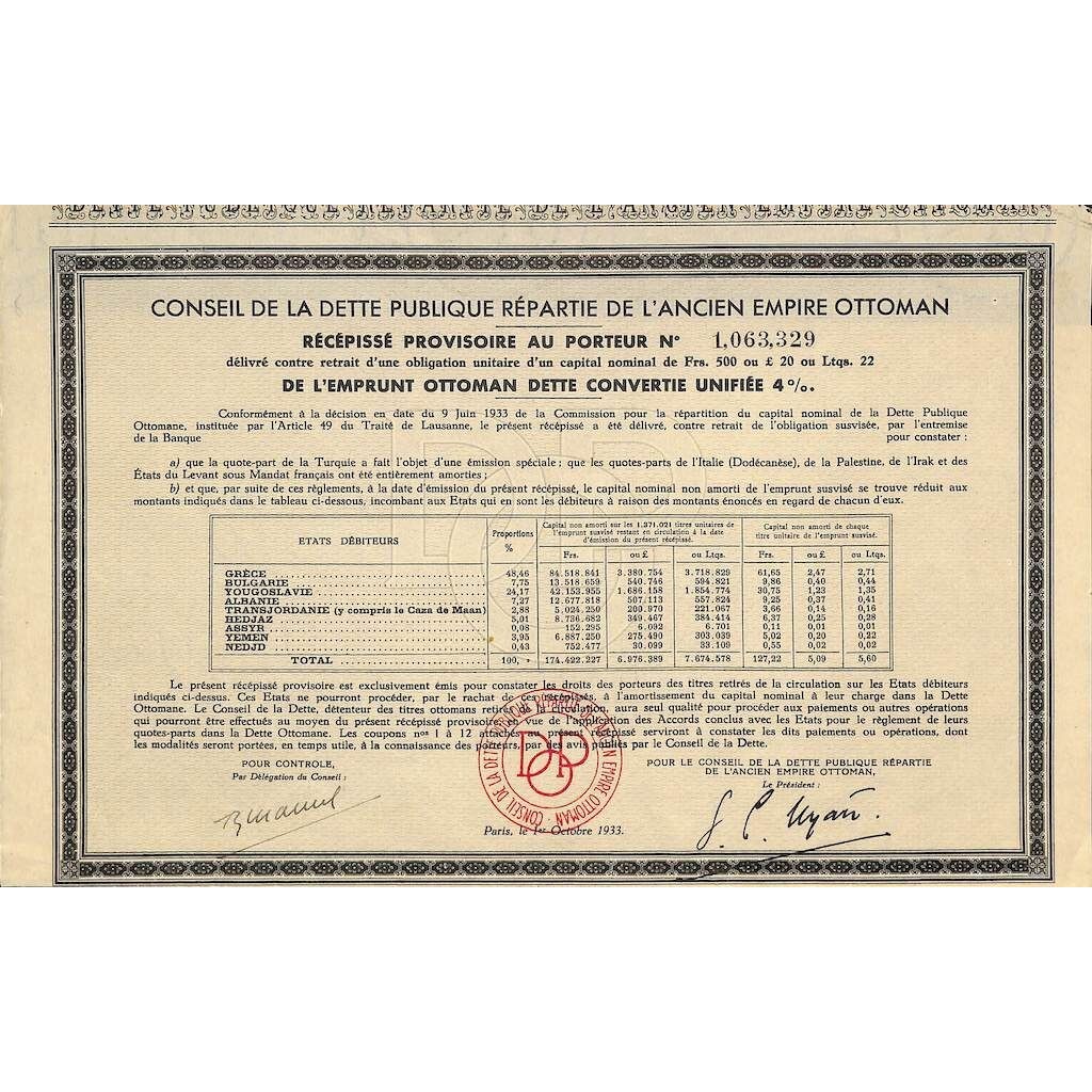 Conseil de la dette publique repartie de l’ancien empire ottoman