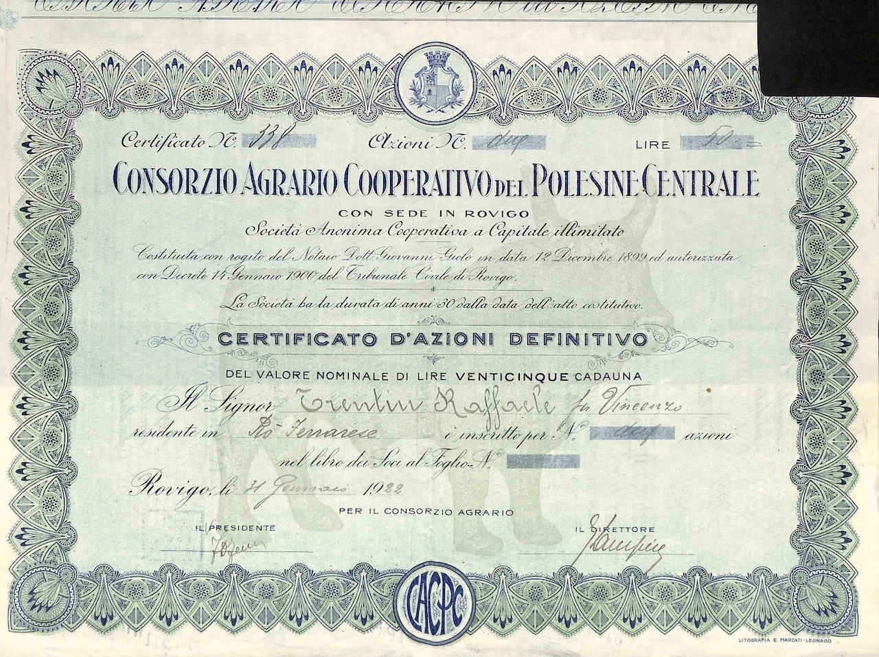 A-7425Consorzio Agrario Cooperativo del Polesine Centrale-1Stab. Minelli – RovigoRovigo1907VariabileR3 (501-1000 pezzi)S3 (da 51 a 100 €)