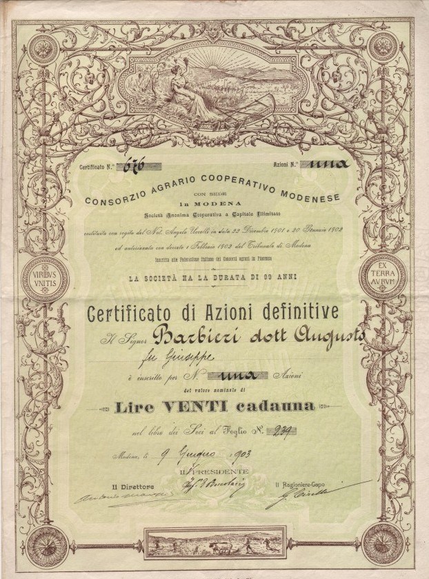 La società, sorta nel 1902, come molti consorzi agrari dell’epoca era iscritta alla Federazione Italiana dei Consorzi Agrari o Federconsorzi, fondata a Piacenza nel 1892 come strumento di acquisti collettivi per ottenere una calmierazione del mercato.