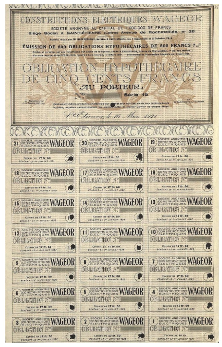 Obbligazione ipotecaria al portatore del valore di 500 Franchi.