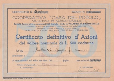 A-31544COOPERATIVA CASA DEL POPOLO-1Villanova19491 AzioneR1 (Più di 5000 pezzi)S1 (da 0 a 25 €)