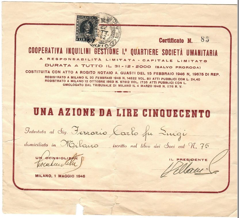 Cooperativa Inquilini gestione I quartiere società umanitaria