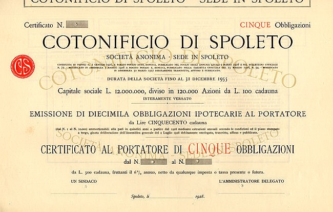 25 obbligazioni 7% al portatore da Lire 500