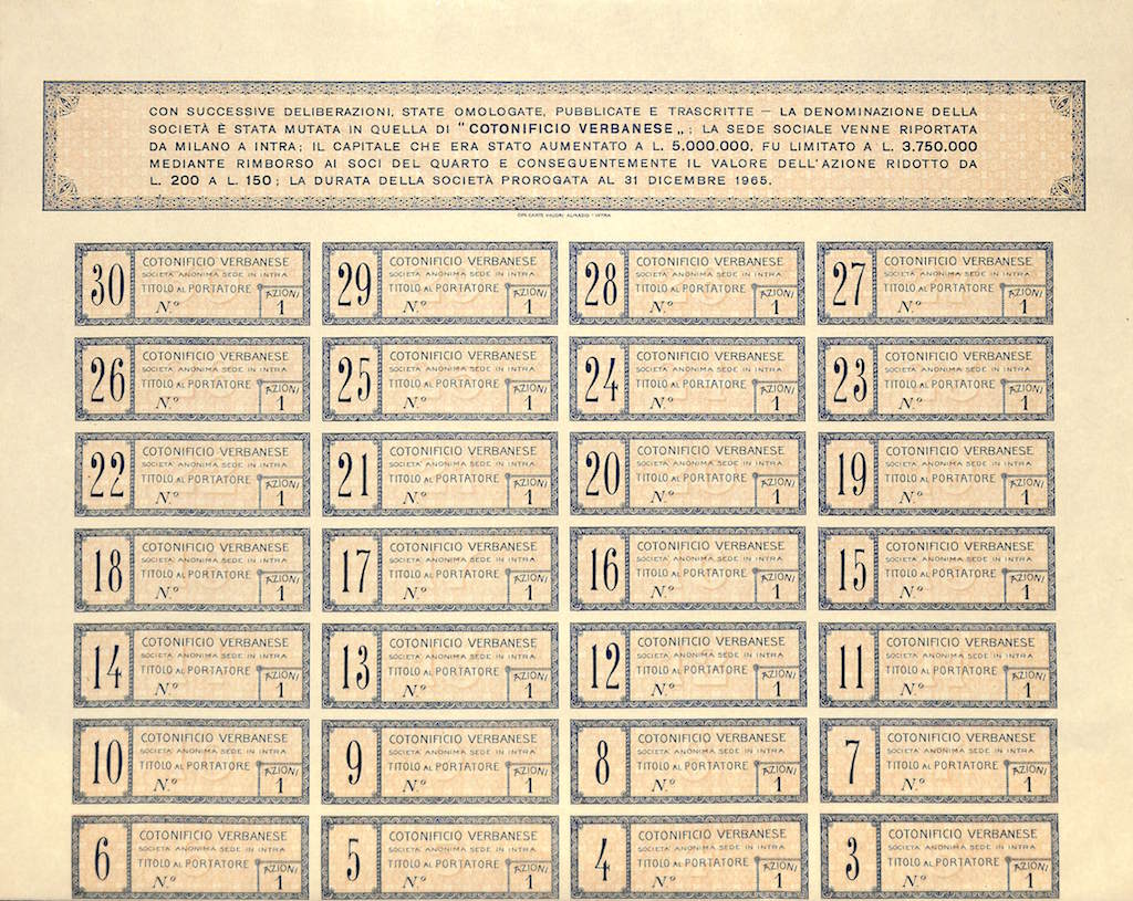 A-9304Cotonificio Verbanese-1Off. Carte Valori Almasio & C. - IntraVerbano-Cusio-Ossola19651 azioneR2 (1001-5000 pezzi)S2 (da 26 a 50 €)