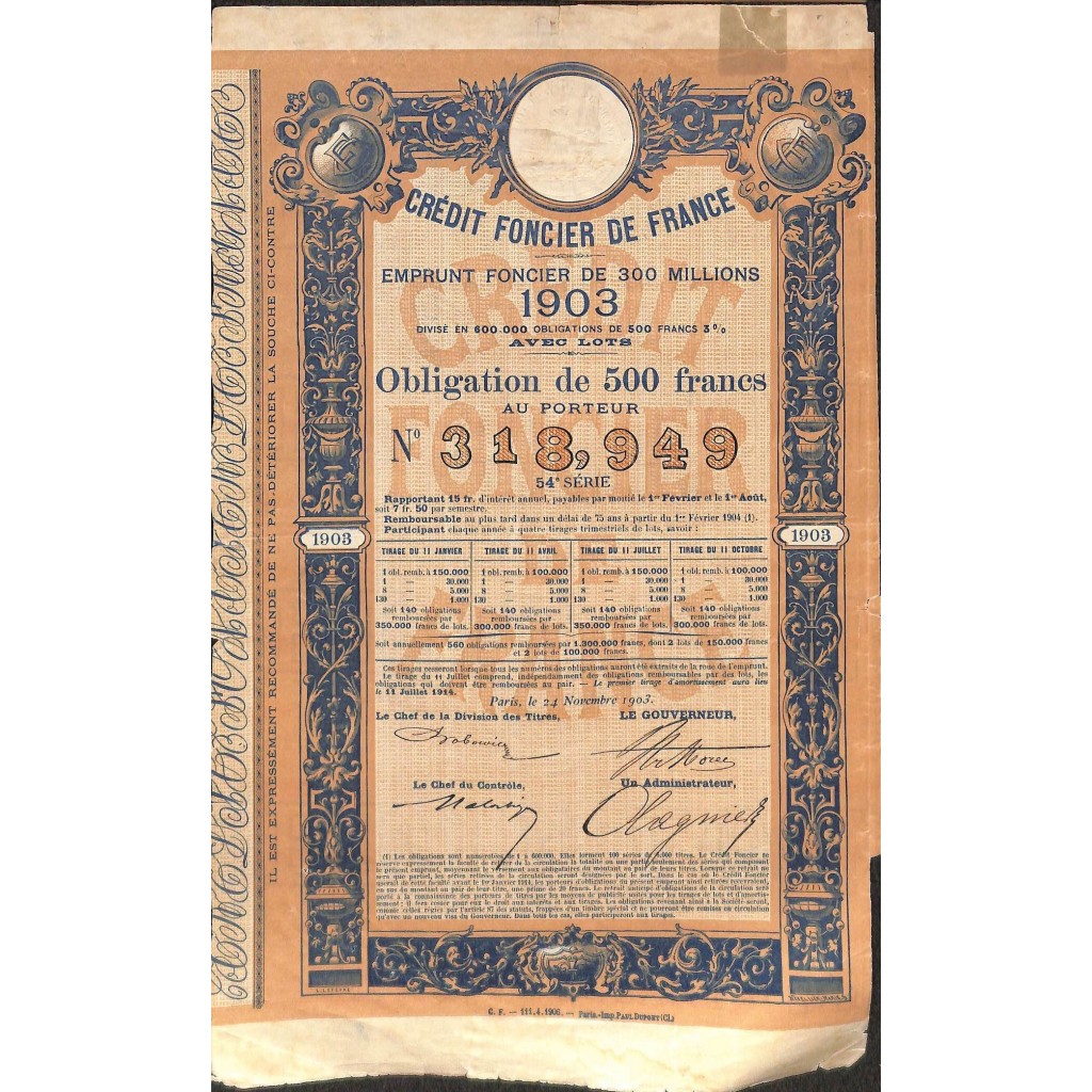 Titolo obbligazionario al portatore 3% del valore di 500 Franchi.