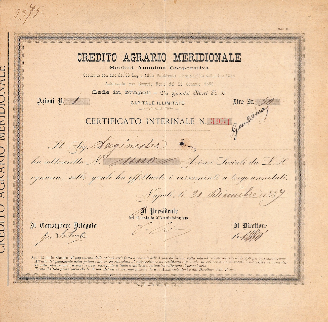Costituzione: 23 luglio 1885
