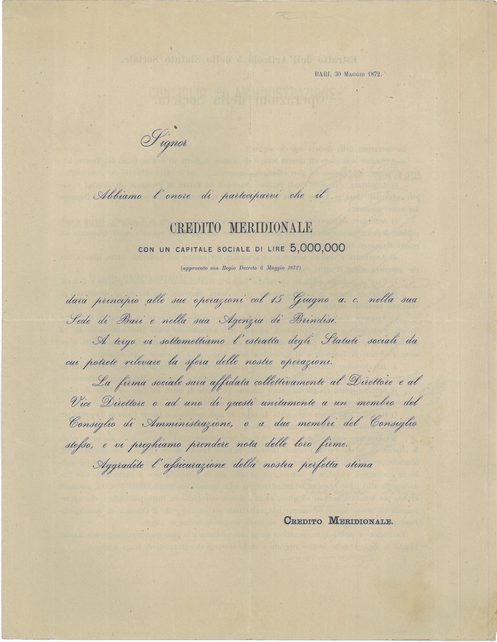 Credito Meridionale (Cap. Soc. 5.000.000 di Lire)