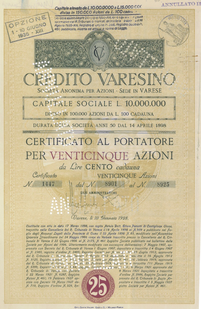 Nel 1919 entrò nell’orbita del Credito Italiano, mantenendo comunque la propria autonomia gestionale.
