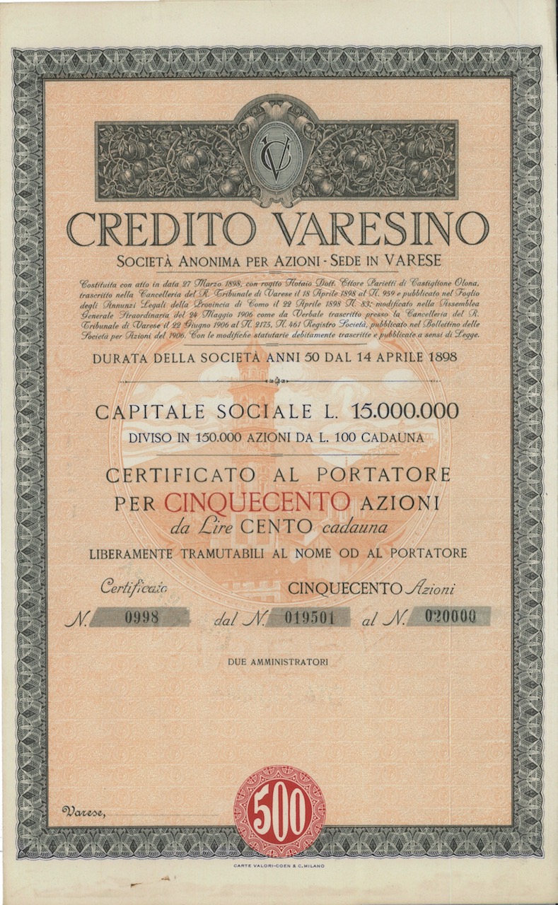 Fondato nel 1898, il Credito Varesino si affermò rapidamente quale istituto bancario di riferimento della provincia di Varese: nel 1934 contava filiali nei maggiori comuni del territorio e anche una a Milano, intrattenendo relazioni con il Banco di Napoli e il Banco di Sicilia.