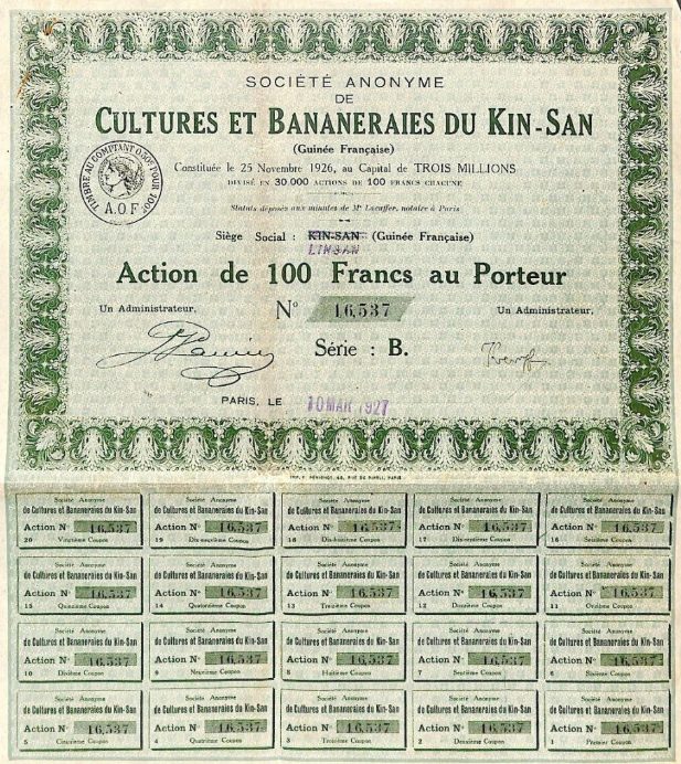 A-51046Cultures et bananeraies du kin-san soc. Anon. De-1 Parigi1927100 FranchiR1 (Più di 5000 pezzi)S1 (da 0 a 25 €)