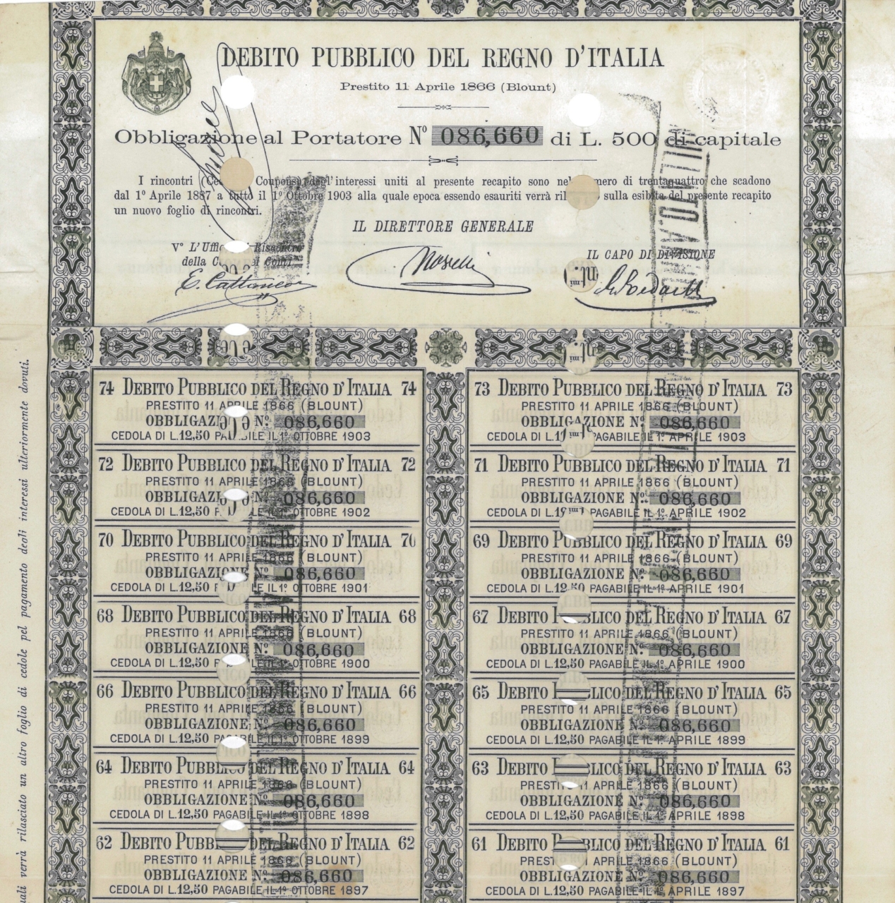 Deb. Pubbl. del Regno d’Italia – Obbligazione al Portatore