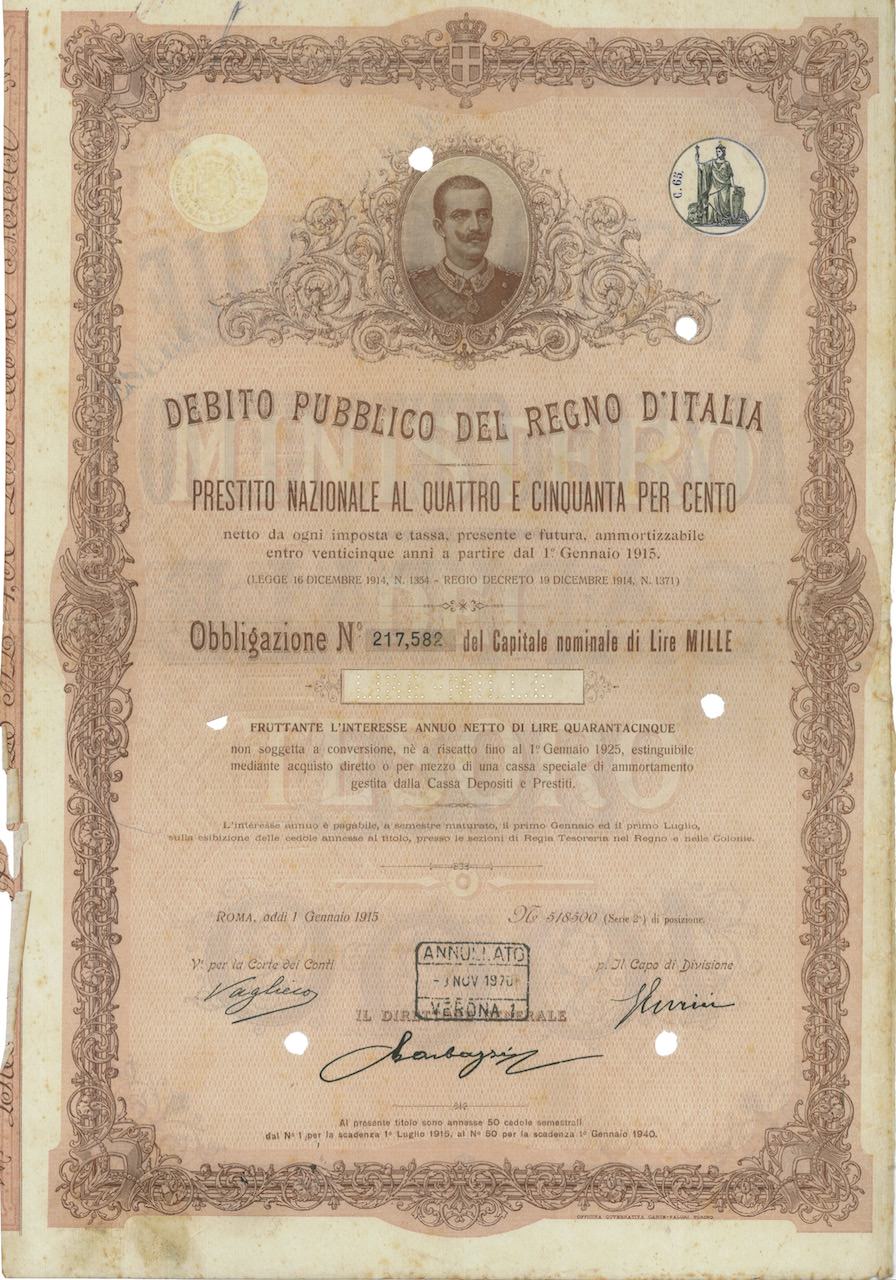 Debito Pubbl. del Regno d’Italia – Prestito Nazionale al 4,50%