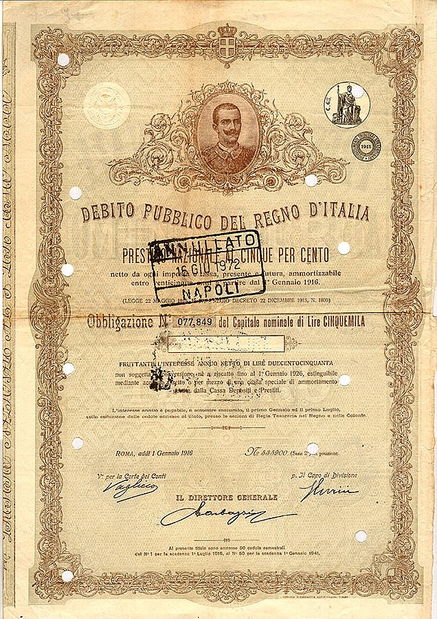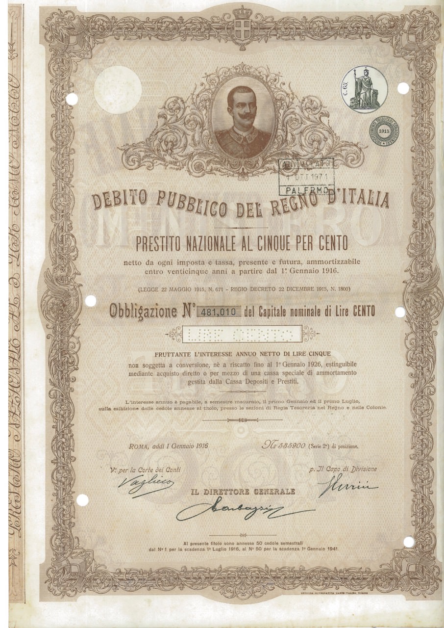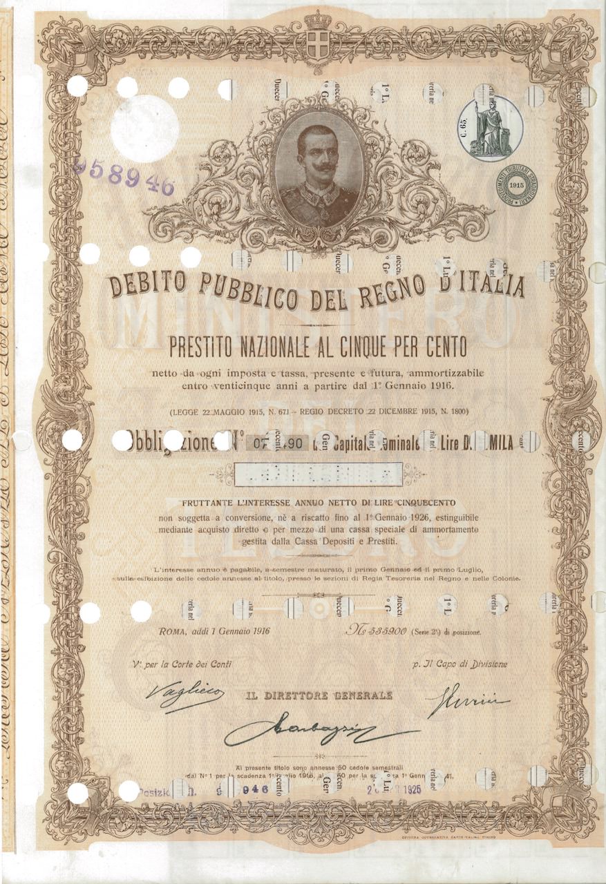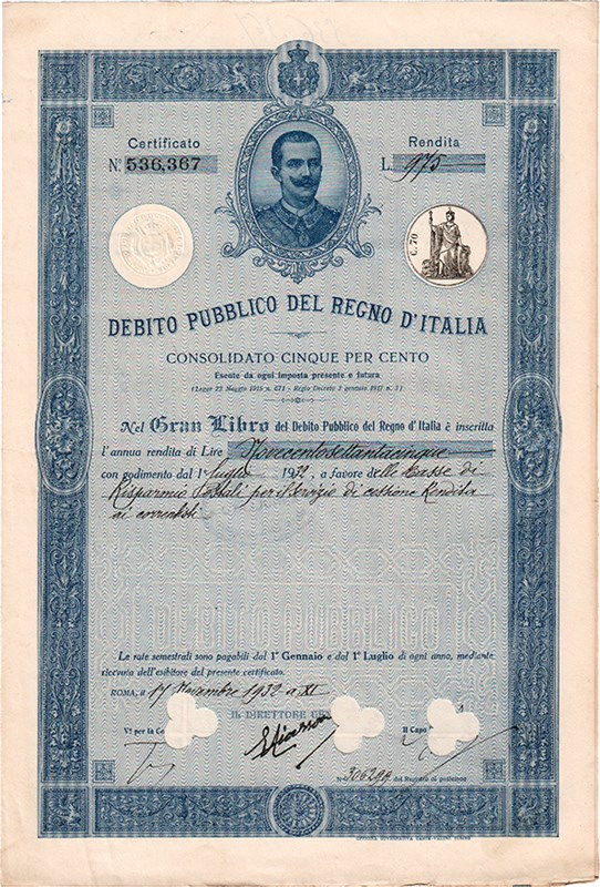 Debito Pubbl. del Regno d’Italia – Prestito Nazionale al 5%