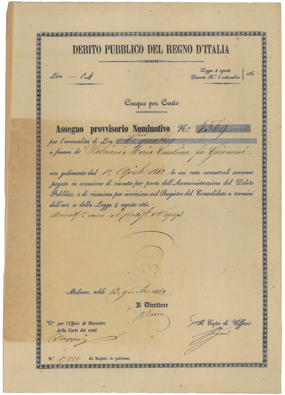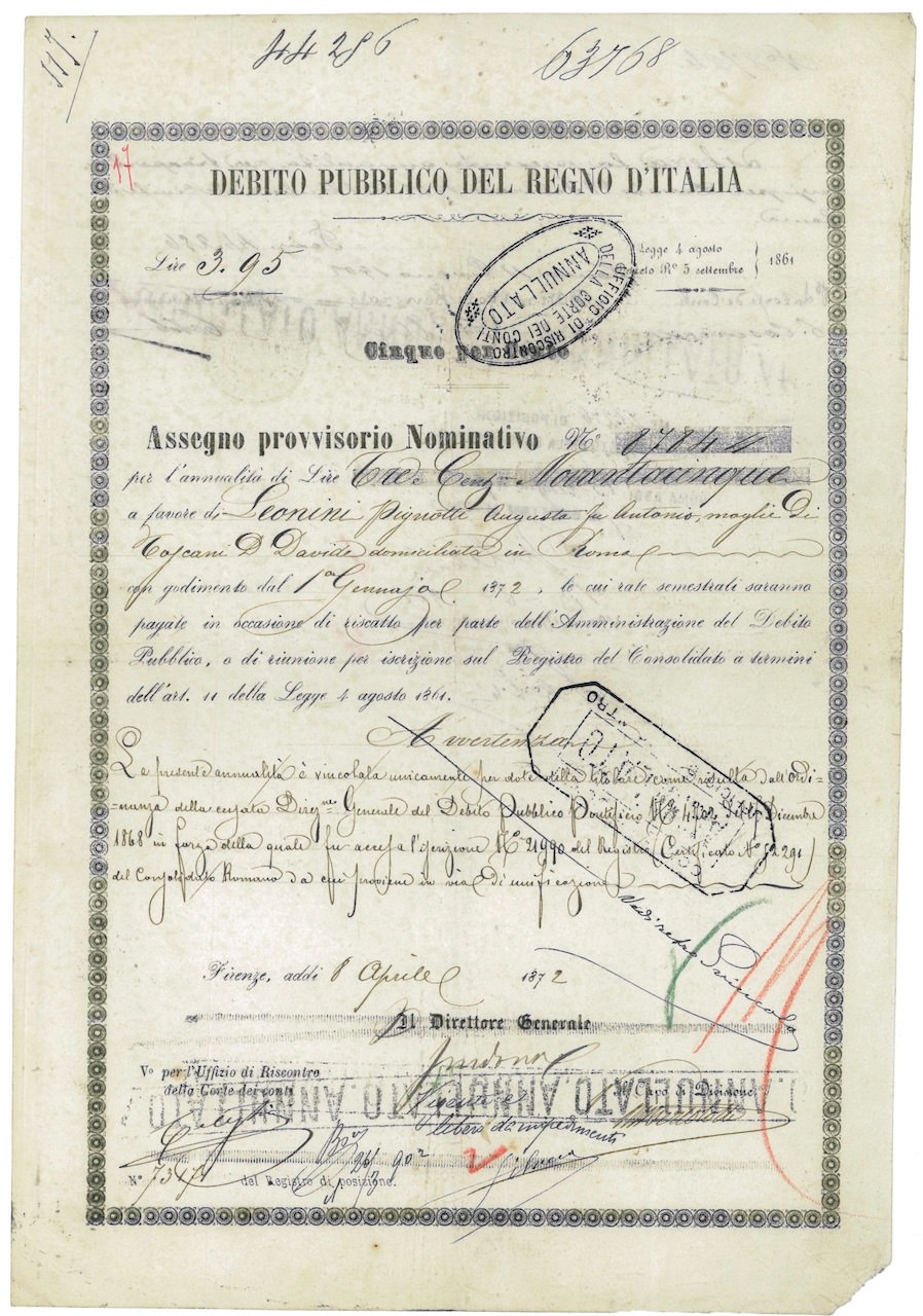 Debito Pubblico del Regno d’Italia – Assegni Provvisori 5%