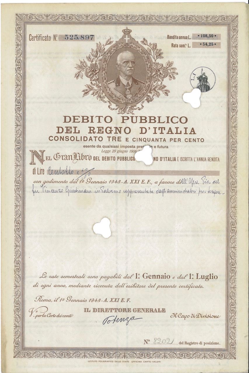 Debito Pubblico del Regno d’Italia – Certificati (Consolidato 3,50%)