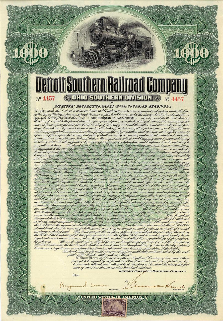 Creato nel 1901 dalla fusione di Detroit e Lima Northern Ry. con l'Ohio Southern Ry. per costruire una linea di 478 miglia da Detroit, Mich. via Toledo a Ironton, O. Già in bancarotta nel 1905, poi riorganizzato come Detroit, Toledo e Ironton Ry. Andò in bancarotta già nel 1908, ma fu in grado di continuare a funzionare fino a quando non fu acquistato da HENRY FORD nel 1920. Ford ha riconosciuto l'importanza strategica di questa ferrovia, che collegavano le sue fabbriche a Dearborn, Mich. a praticamente tutte le principali ferrovie est-ovest nel Midwest. Infastidito dalle discussioni con la Commissione del monopolio, Ford vendette il treno alla Pennsylvania RR nel 1929. PennCentral ha venduto la D.T. & I.Ry. nel 1980 al canadese Grand Trunk Western RR, ... Altro