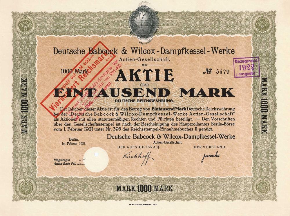 B-74314Deutsche Babcock & Wilcox-Dampfkessel-Werke-2Berlino19211 azione da 1.000 MarchiR4 (251-500 pezzi)S4 (da 101 a 250 €)