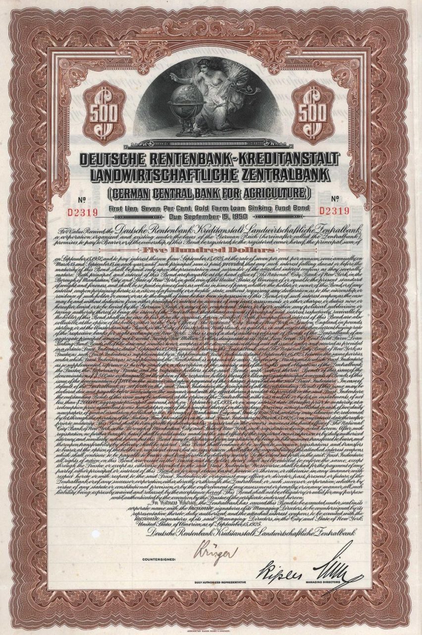 L’odierna Landwirtschaftliche Rentenbank, che è stata appena costituita nel 1949, è emersa dalla Deutsche Rentenbank (fondata nel 1923 come banca valutaria per combattere l’iperinflazione dell’epoca) e dalla Rentenbank-Kreditanstalt (fondata nel 1925 come istituto centrale di rifinanziamento per il settore agricolo). Emettendo quattro obbligazioni americane negli anni ’30, fu in grado di raccogliere considerevoli fondi internazionali per finanziare i requisiti di capitale dell’agricoltura tedesca. Oggi svolge un ruolo importante, soprattutto nel cambiamento strutturale dell’industria molitoria tedesca, rilevando partecipazioni.