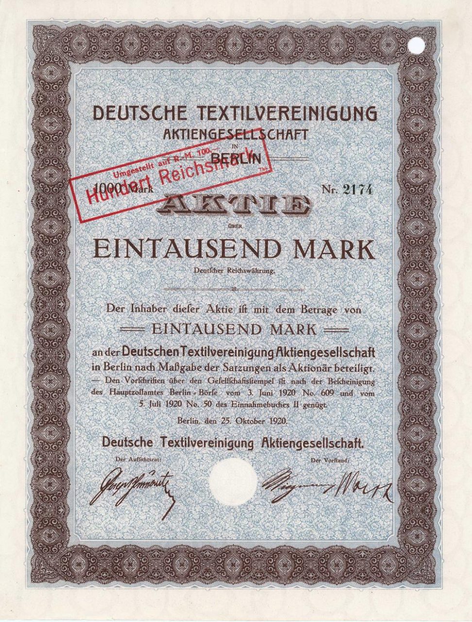 Fondata nel 1918. Produzione di borse e teloni. Commercio all'ingrosso di juta, tessuti misti e sacchi di carta. Dal 1924 divenne Deutsche Textilvereinigung AG Detag, dal 1959 GmbH.