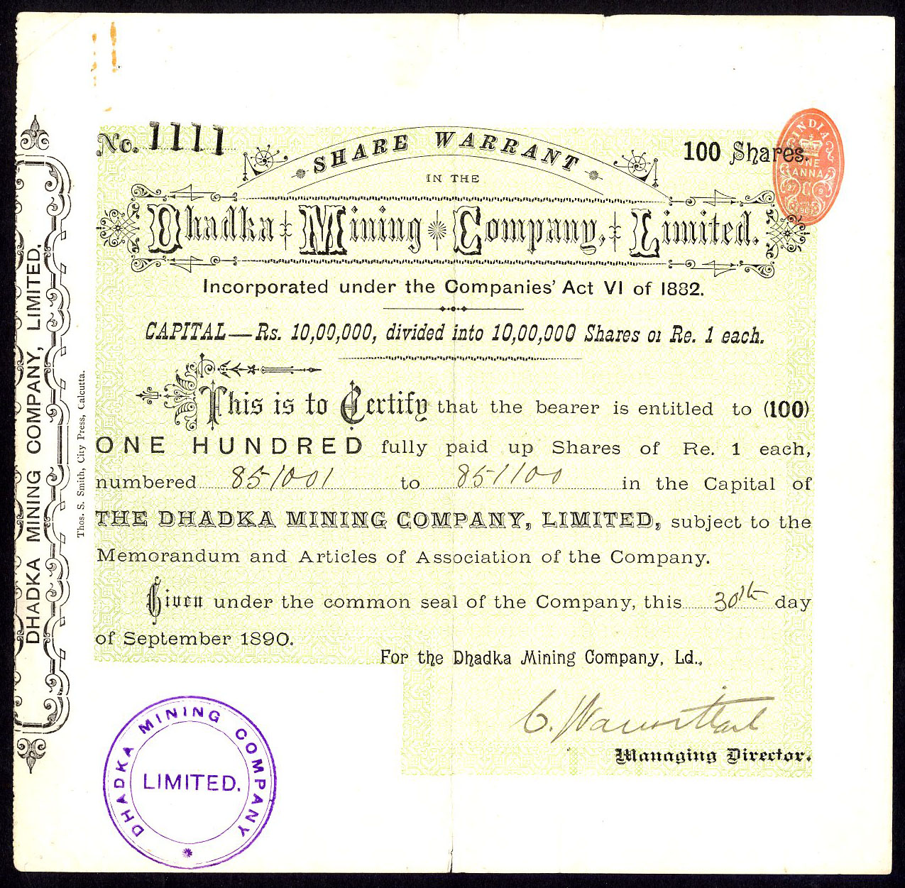 Incorporato sotto gli Indian Companies Acts 1882. Capitale 10.000.000 di rupie in azioni di 1 rupia.