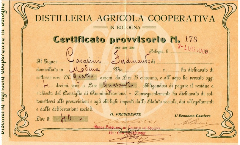 A-66107Distilleria Agricola Cooperativa in Bologna-1Bologna1909Certificato provvisorioR1 (Più di 5000 pezzi)S1 (da 0 a 25 €)