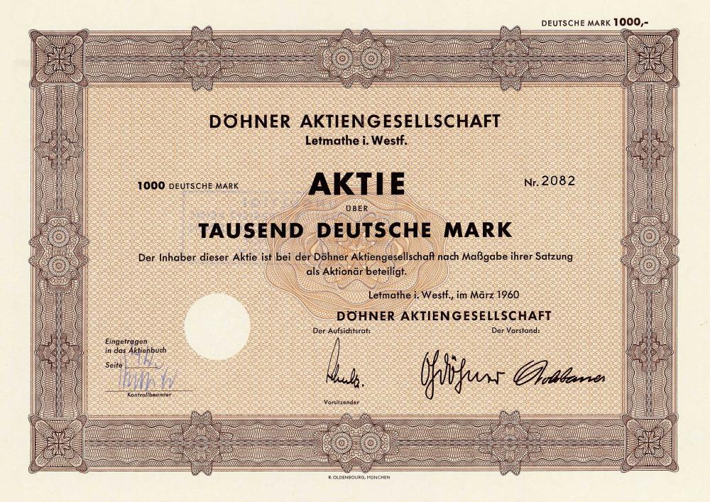 Nel 1922 la società rilevò la società H.D. Wilke Nachf. a Letmathe e la fabbrica di articoli in metallo C.H. Büscher a Iserlohn. Operante come Stahl-und Eisenwerke Döhner AG fino al 1938, poi Döhner AG. Prodotti: nastri di acciaio, nastri di acciaio temperato, fili di acciaio e ferro, acciai per utensili, tubi fessurati, tubi. Nel 1970 decisione di integrarsi in Hoesch AG.
