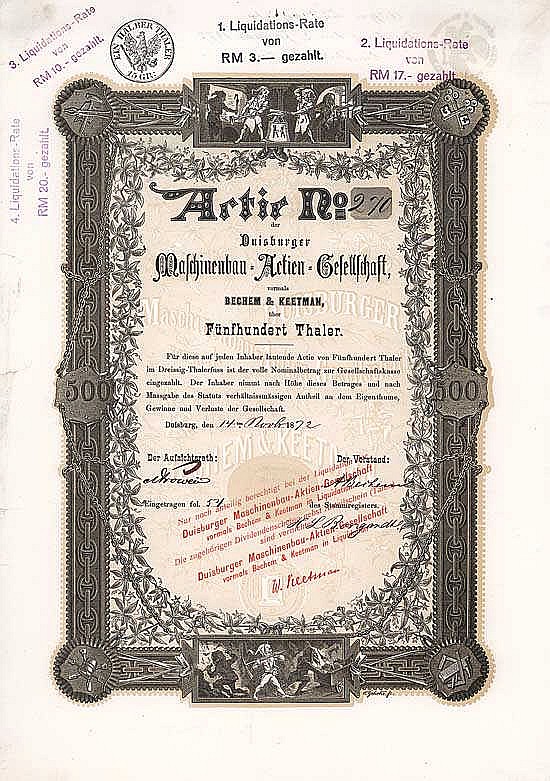 A-66476Duisburger Maschinenbau-AG vormals Bechem & Keetman-1Duisburg18721 azione da 500 Talleri--
