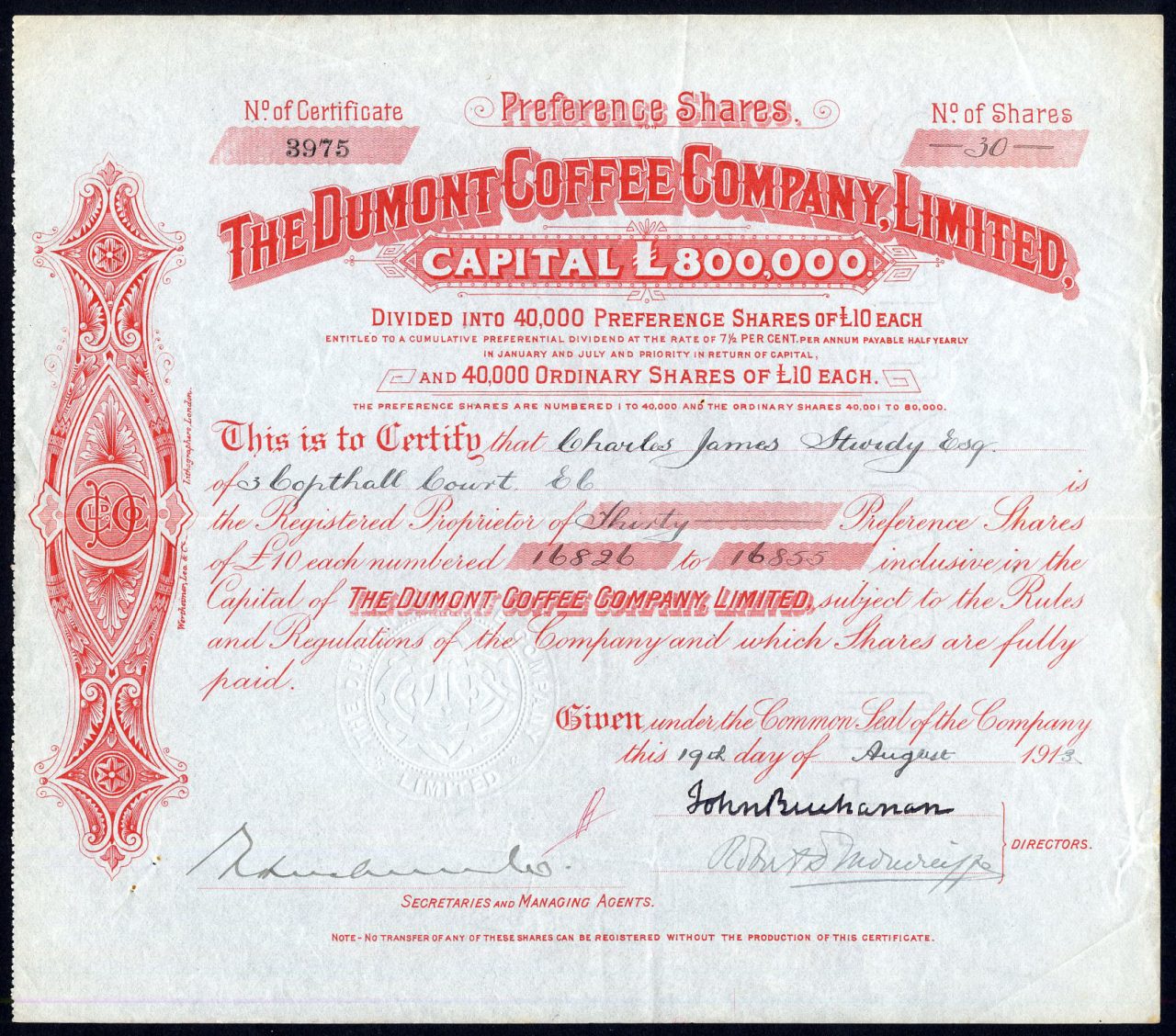 Capitale £ 80.000 in 40.000 azioni ordinarie e 40.000 azioni privilegiate di £ 10