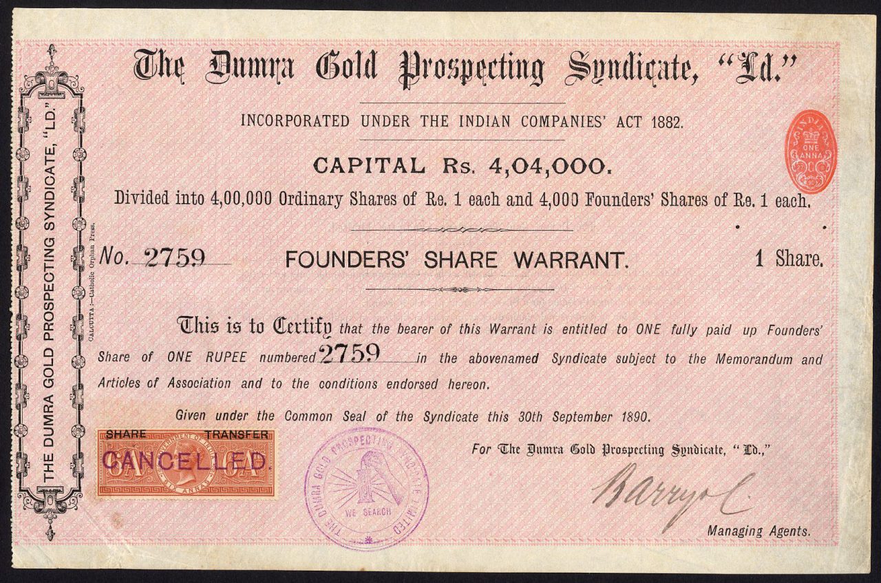 Costituito ai sensi dell’Indian Companies Acts del 1882. Capitale 4.04.000 rupie in azioni ordinarie di 1 rupia e azioni dei fondatori di 11 rupee.