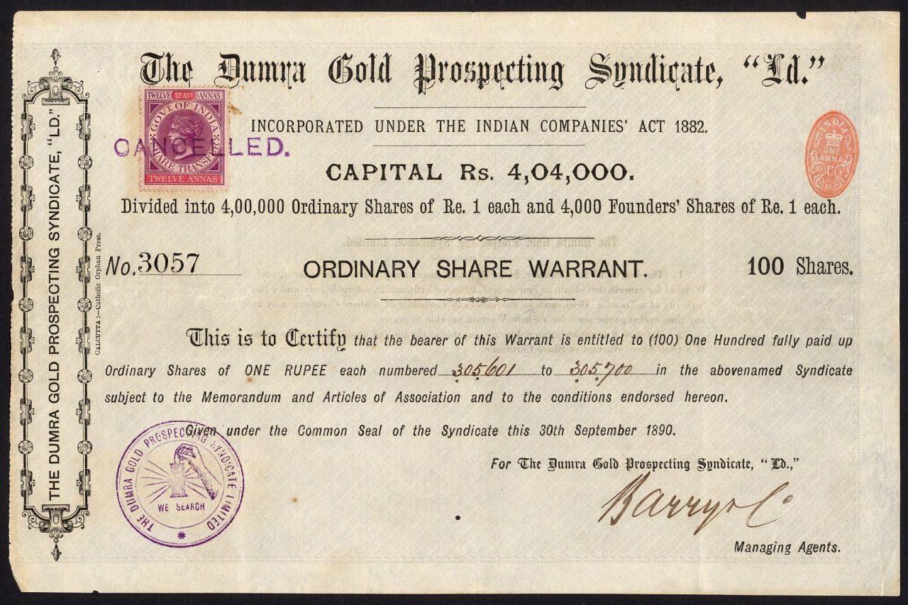 Costituito ai sensi dell’Indian Companies Acts del 1882. Capitale 4.04.000 rupie in azioni ordinarie di 1 rupia e azioni dei fondatori di 11 rupee.
