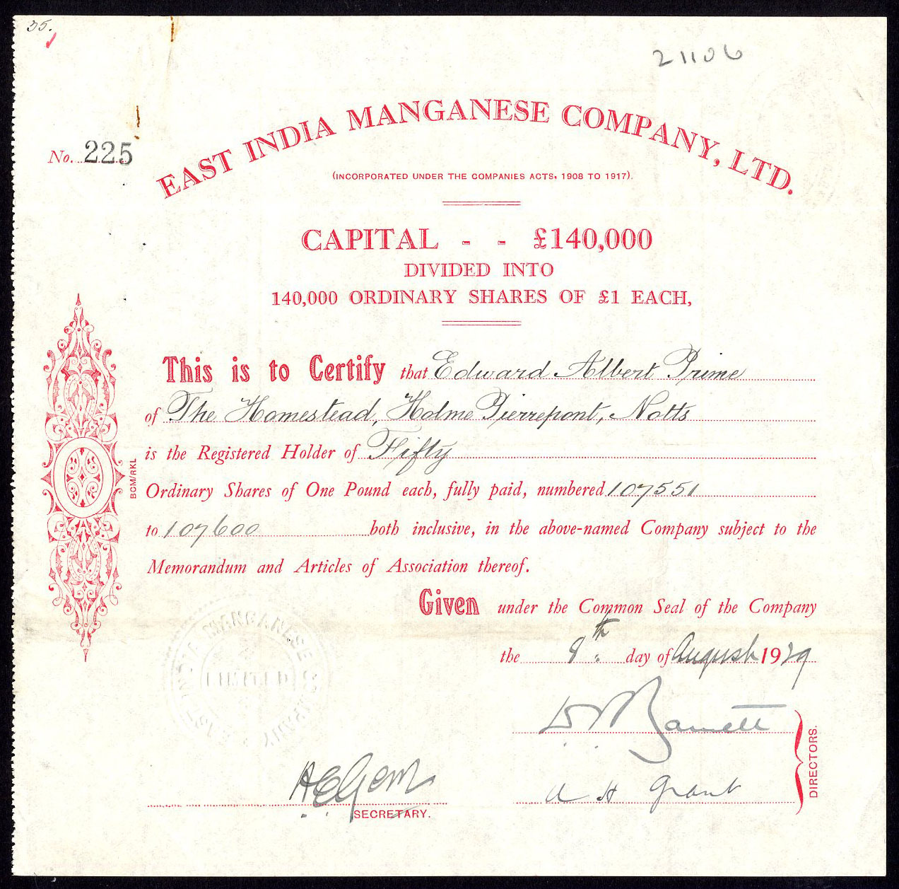 East India Manganese Company Ltd