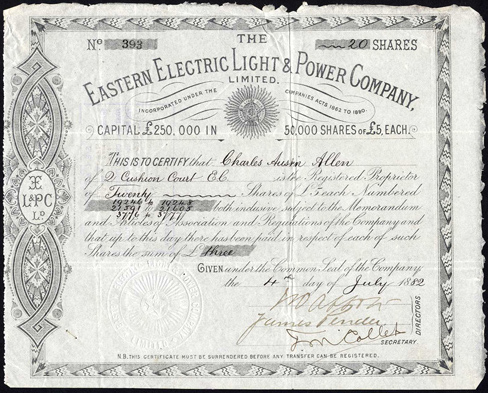 Capitale £ 250.000 in 50.000 azioni da £ 5 ciascuno.