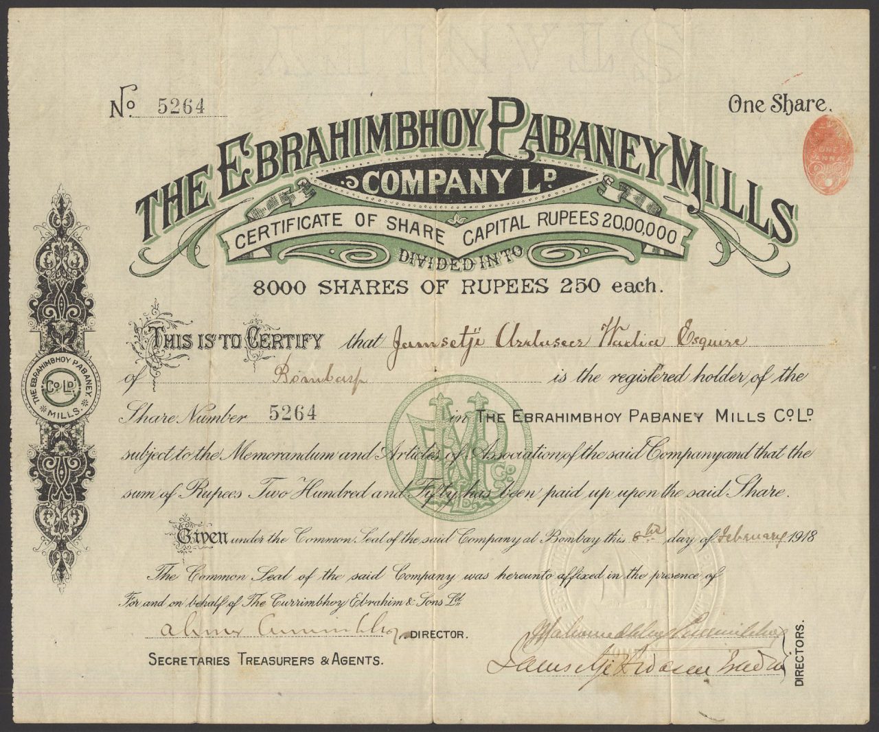 Incorporato in India. Capitale 20.00.000 rupie in 8.000 azioni da 250 rupie.