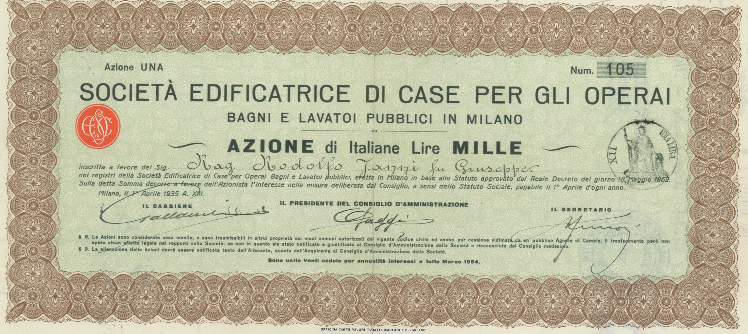Edificatrice di Case per gli Operai Bagni e Lavatoi Pubbl. in Milano Soc.