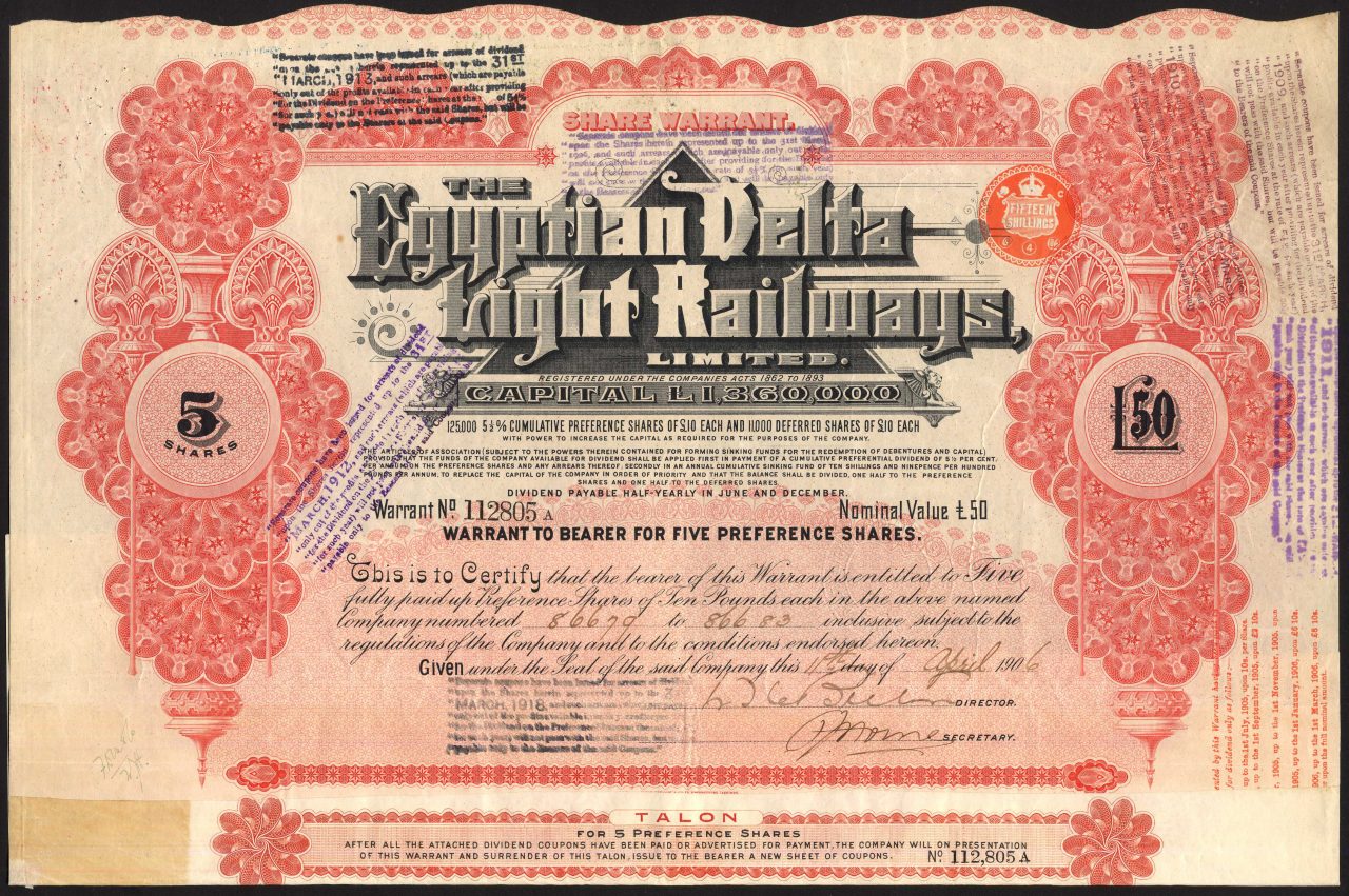 B-35392Egyptian Delta Light Railways Ltd-2Egitto19065 Preference ShareR1 (Più di 5000 pezzi)S1 (da 0 a 25 €)