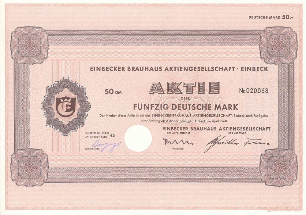A-65052Einbecker Brauhaus AG Einbeck-1Einbeck19681 azione da 50 MarchiR3 (501-1000 pezzi)S3 (da 51 a 100 €)